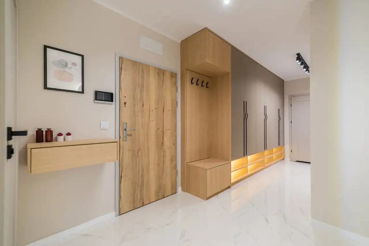 - przedpokój z praktycznymi szafami w zabudowie,