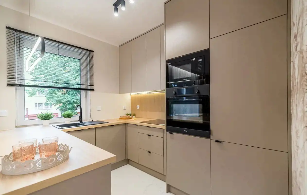 Mieszkanie zostało urządzone w wysokim standardzie, z dbałością o każdy szczegół. Profesjonalna firma zajmująca się wykańczaniem wnętrz pod klucz zadbała o spójną aranżację, funkcjonalne rozwiązania i ponadczasowy design.