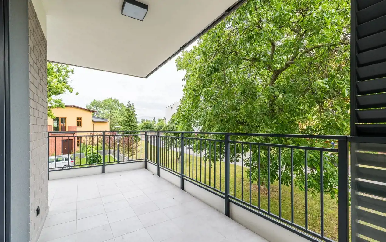 Wnętrza wyróżnia przestronny salon o powierzchni ponad 28 m2, który płynnie łączy się z aneksem kuchennym i prowadzi na duży ponad 16 m taras. To idealne miejsce do odpoczynku czy porannej kawy. Dodatkowym atutem są nowoczesne udogodnienia takie jak klimatyzacja, wideodomofon oraz rolety elektryczne we wszystkich oknach, które zapewniają pełen komfort codziennego życia. Na podłogach zastosowano eleganckie panele ułożone w jodełkę oraz gres o wysokiej jakości, który dodaje wnętrzu charakteru i nowoczesności.