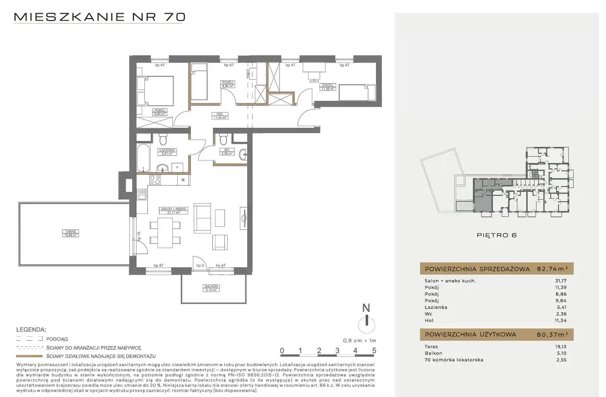- Charakterystyka mieszkania 82.74 m2, 4 pokoje