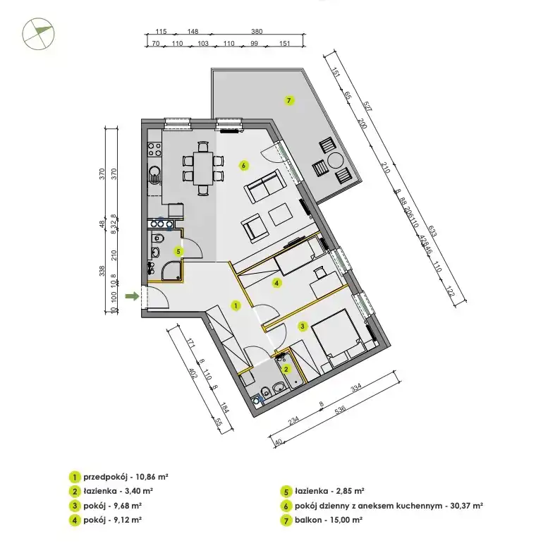 - Charakterystyka mieszkania 66.15 m2, 3 pokoje