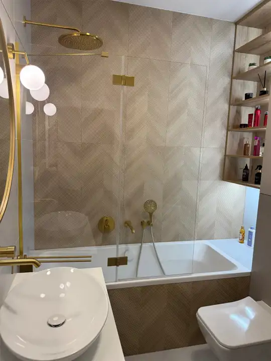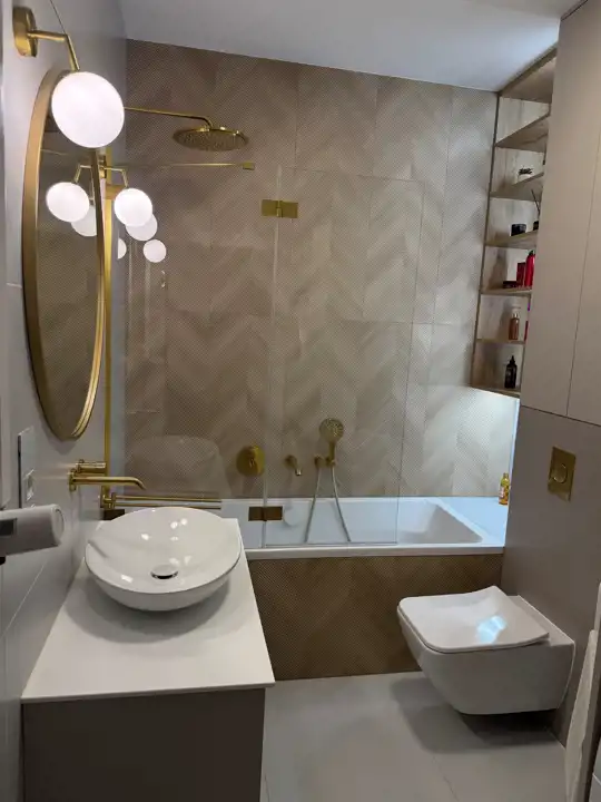 łazienka w nowoczesnym stylu z wanną i armaturą premium