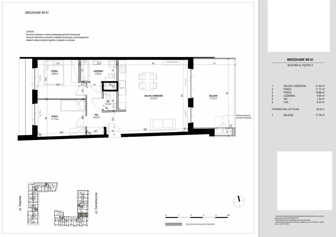 - Charakterystyka mieszkania 68.26 m2, 3 pokoje