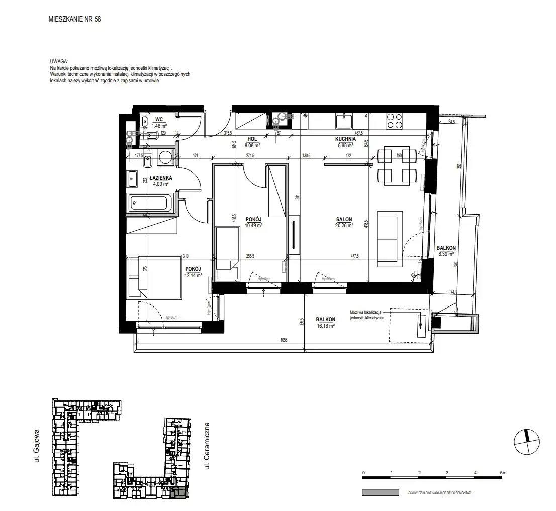 Mieszkanie o pow. 67,96 m2 składa się z :