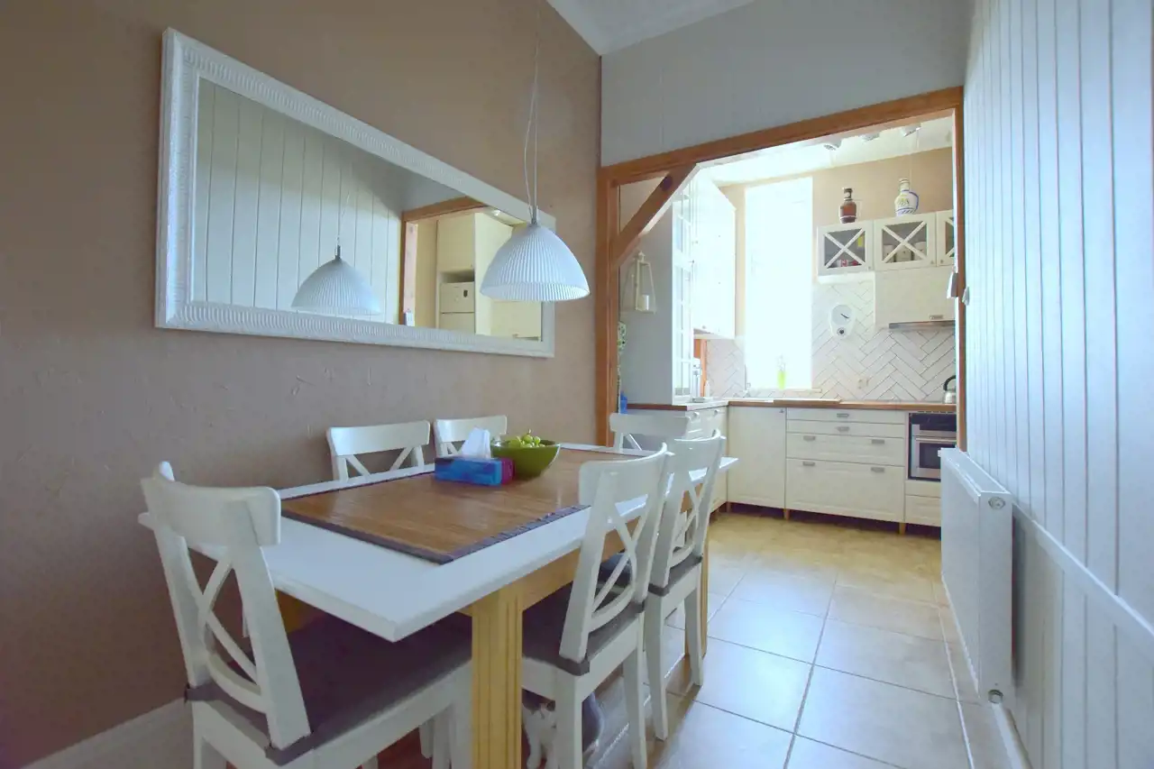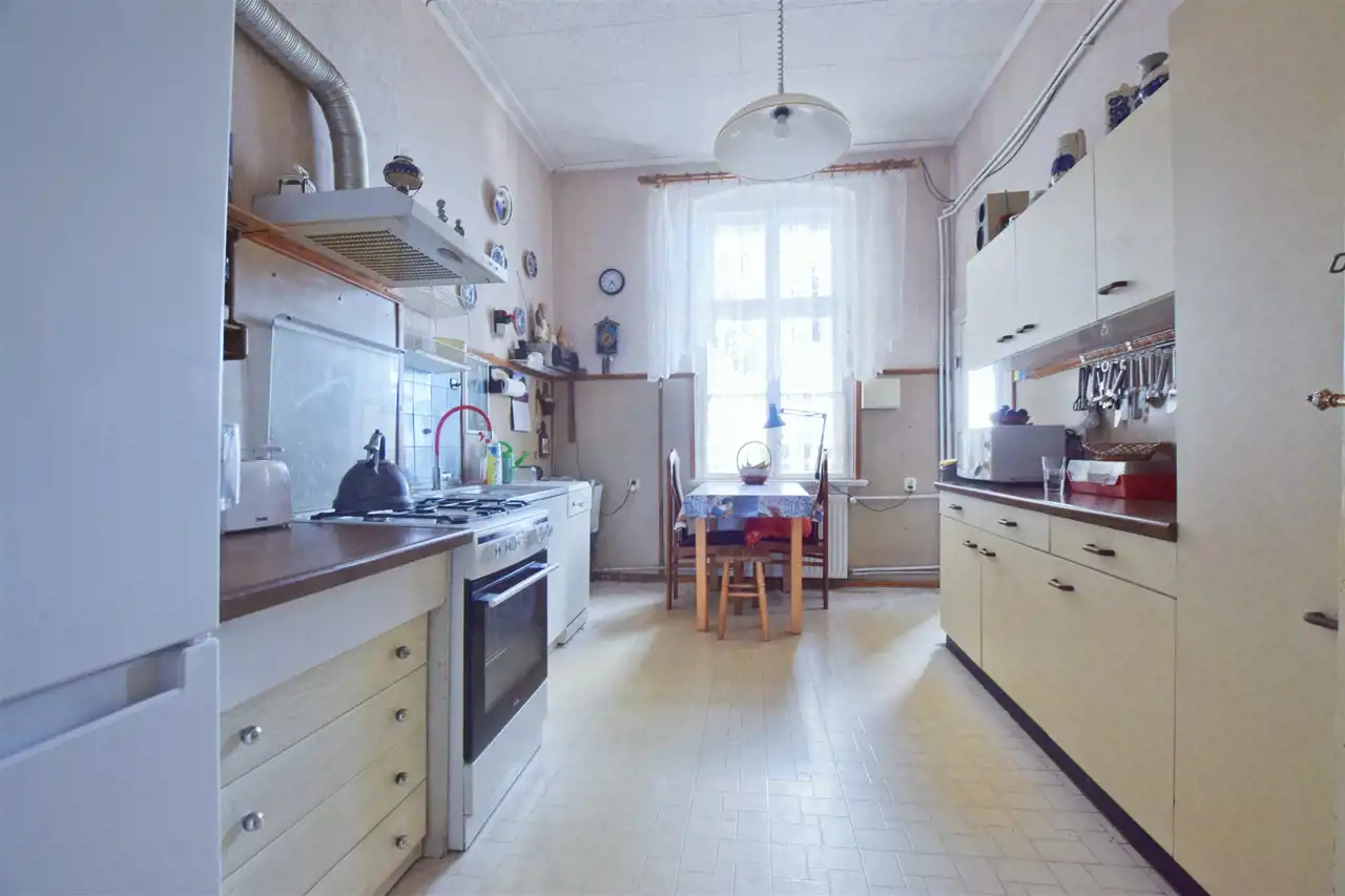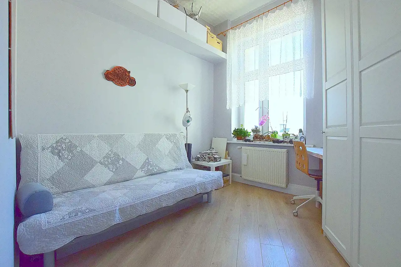 Lokal o kamienicznym charakterze z wieloma oryginalnymi elementami: stolarka drzwiowa, podłogi drewniane, piec kaflowy umieszczony pomiędzy dwoma pokojami (rzadkość!).