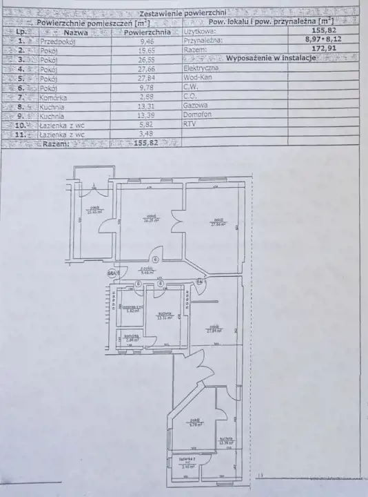 - Charakterystyka mieszkania 155.82 m2, 5 pokoi