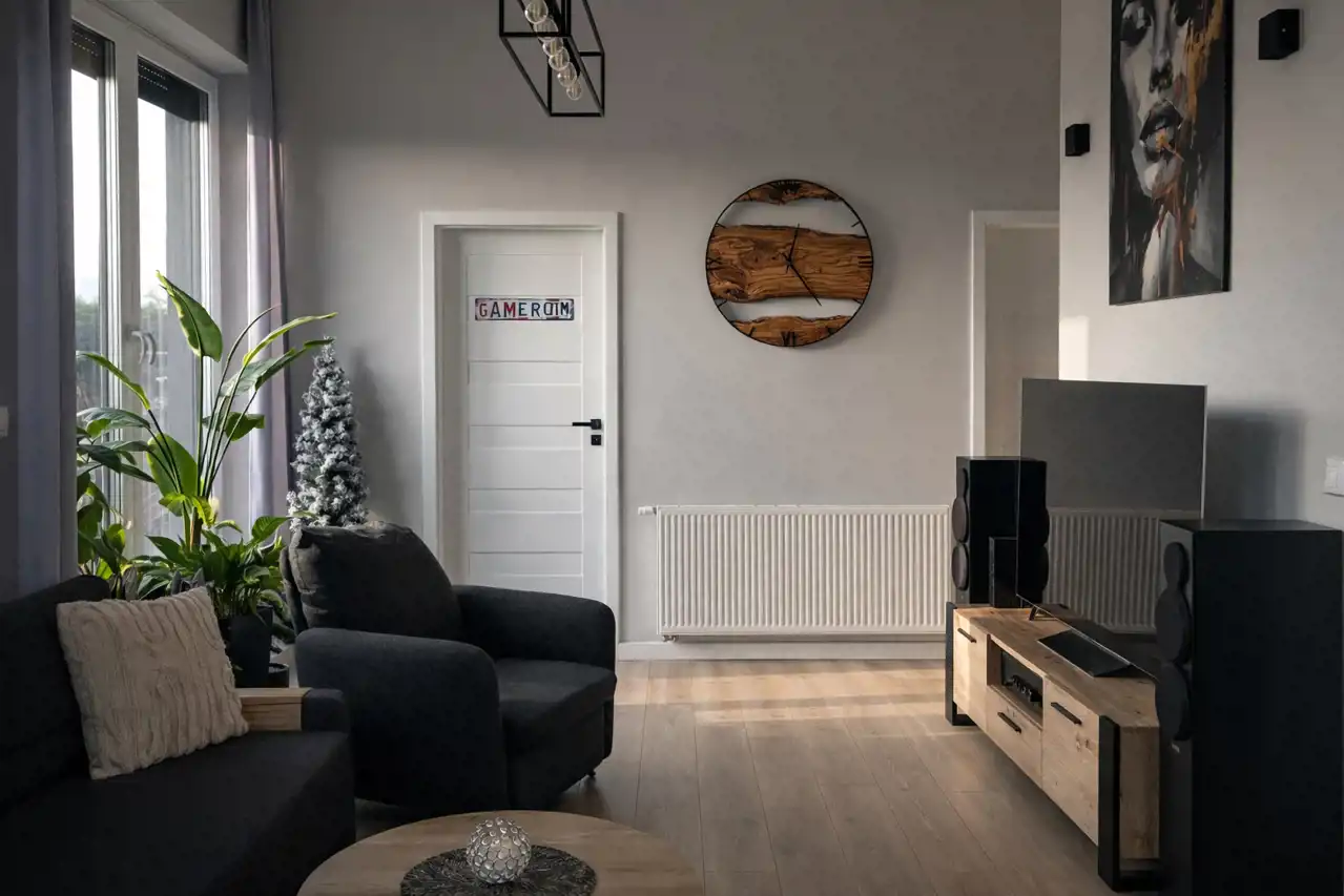 Kolejnym atutem tego apartamentu jest przynależny do niego garaż o powierzchni 17,88 m2 umiejscowiony w bryle budynku oraz dodatkowe miejsce na drugie auto na podjeździe zawarty w cenie.