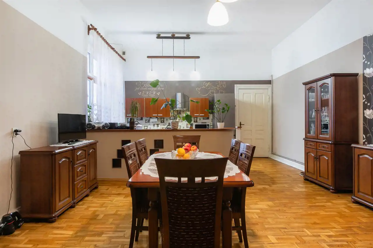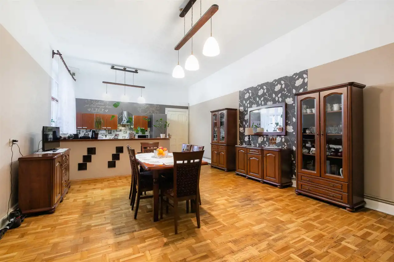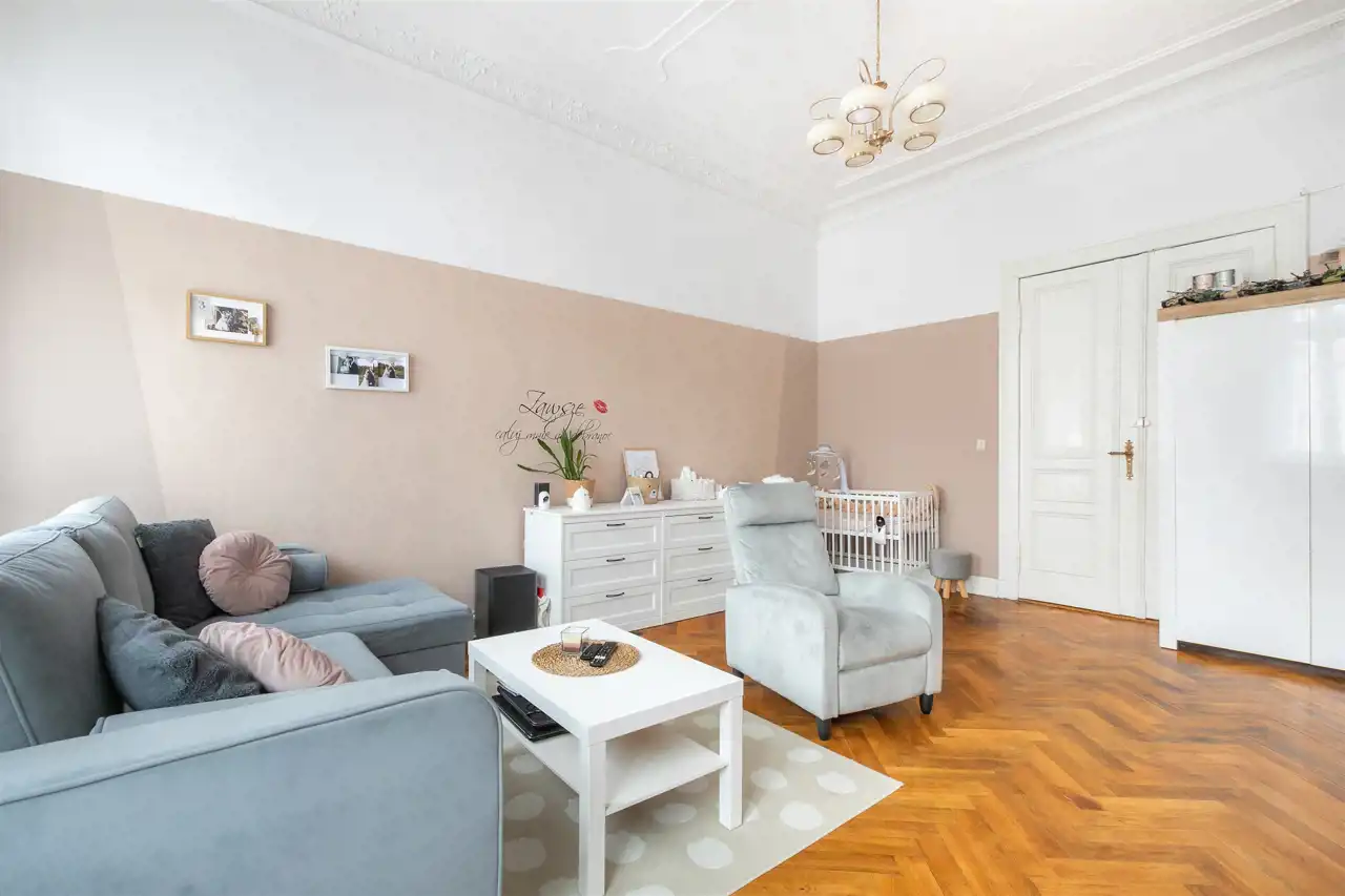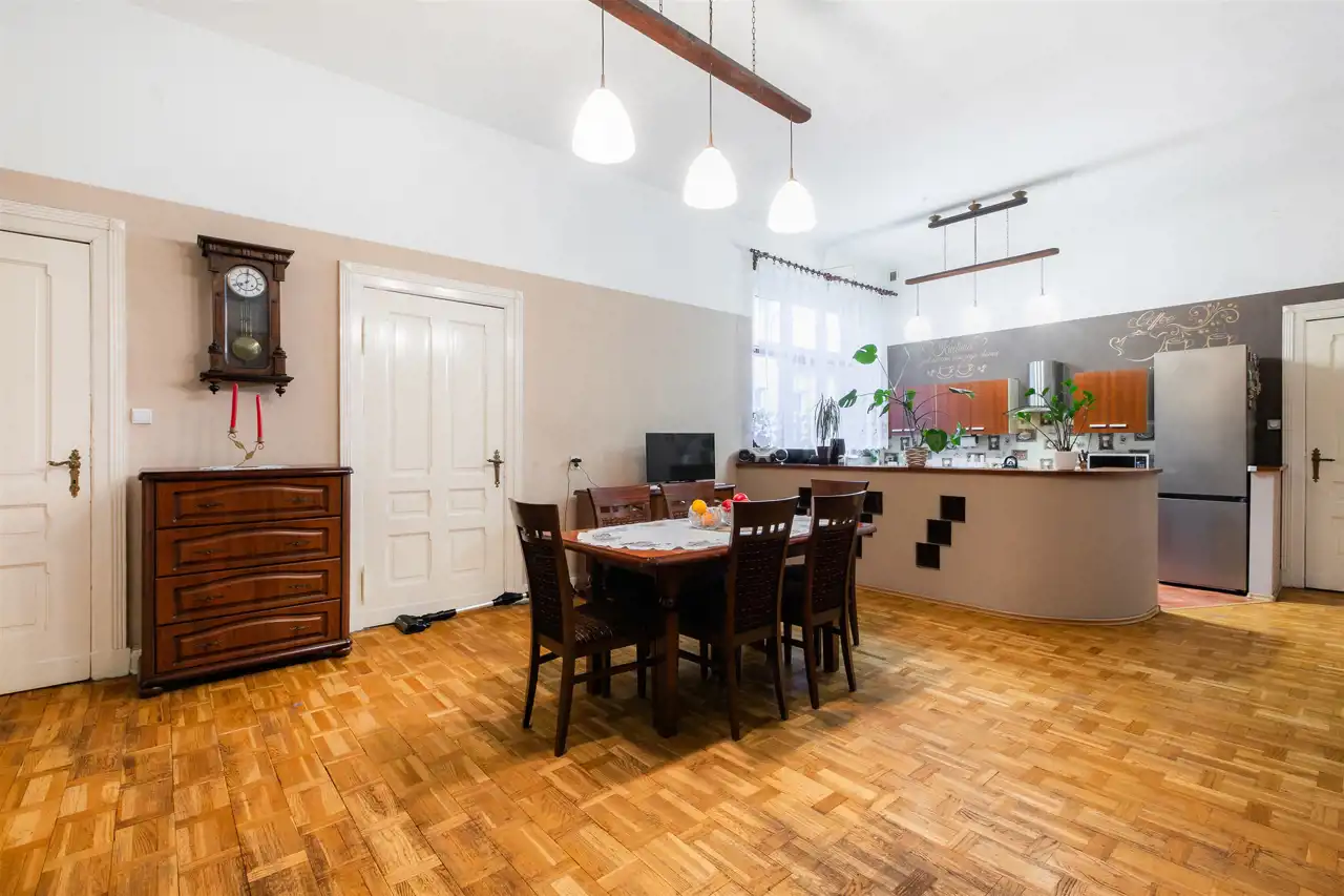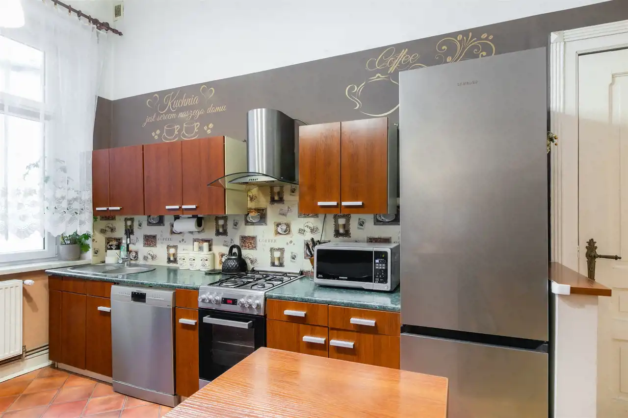 Wymienione instalacje elektryczne i wodno-kanalizacyjne, stylowe drewniane podłogi oraz zachowane oryginalne drzwi podkreślające charakter nieruchomości.