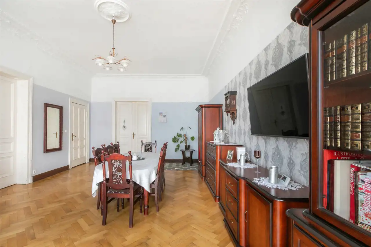 Zapraszam do obejrzenia wyjątkowego mieszkania znajdującego się w budynku, zaprojektowanym przez architekta Józefa Święcickiego, który łączy w sobie elementy eklektyzmu, neogotyku oraz secesji. Mieszkanie o powierzchni 181 m², w tym piwnica ponad 15m2, usytuowane jest na drugim piętrze czterokondygnacyjnej kamienicy z przełomu XIX i XX wieku i ma niepowtarzalny klimat.