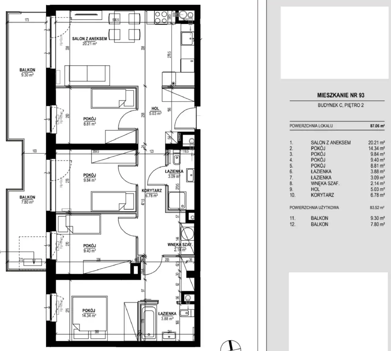 - Charakterystyka mieszkania 87.06 m2, 5 pokoi