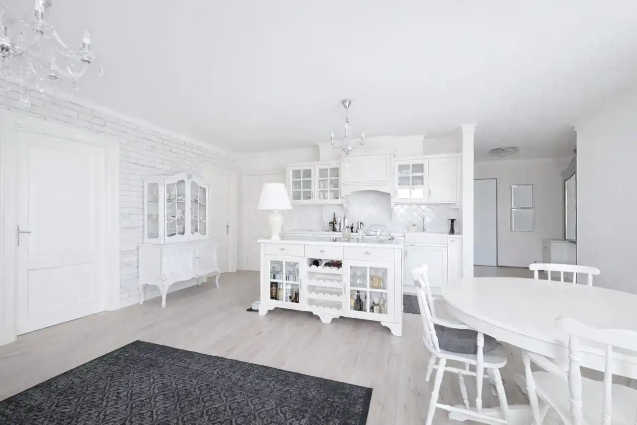 Przestronny salon łączony w sobie strefę odpoczynku dziennego oraz kuchnie w zabudowie z salonu wyjście na balkon.