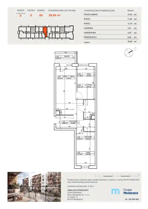 - Charakterystyka mieszkania 59.69 m2, 3 pokoje