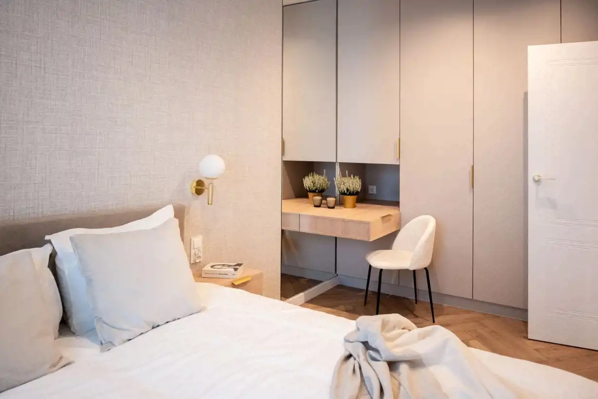- Sypialni – z wygodnym łóżkiem, pojemnymi szafami oraz starannie dobranymi meblami, które tworzą przytulną atmosferę.
