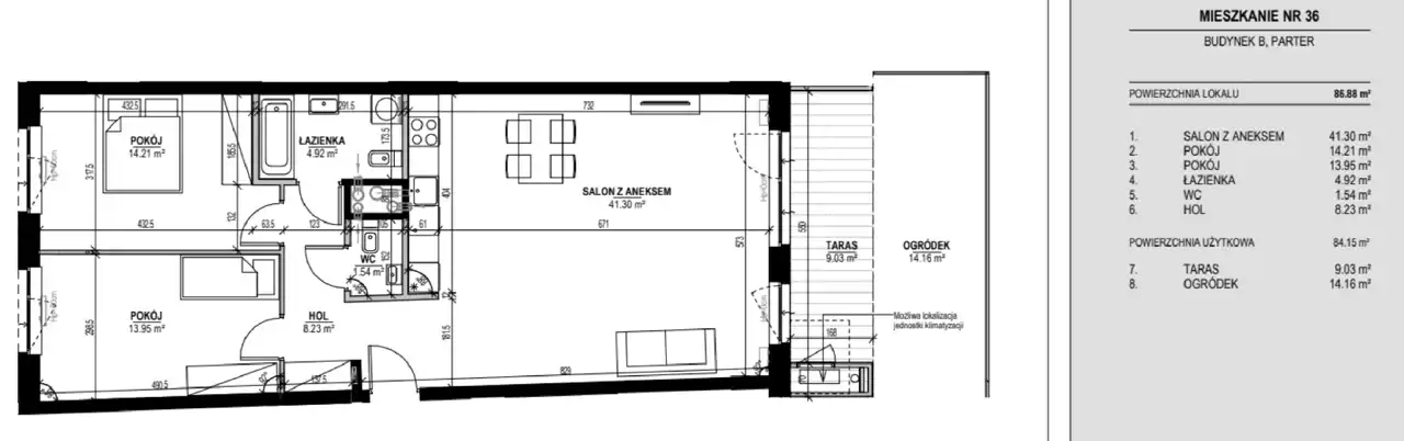 - Charakterystyka mieszkania 86.88 m2, 3 pokoje