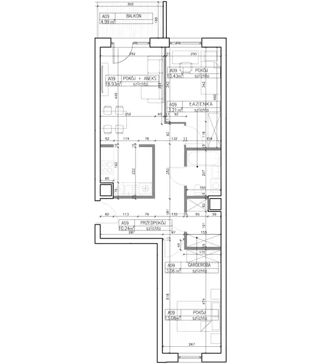 - Charakterystyka mieszkania 60.32 m2, 3 pokoje