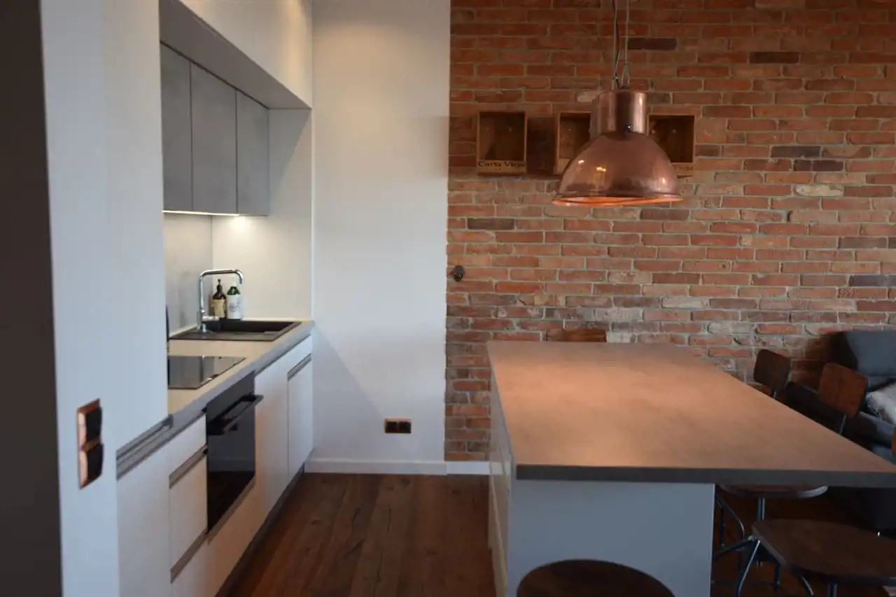 Mieszkanie dwupokojowe (43m2) na szóstym piętrze w apartamentowcu w centrum miasta.
