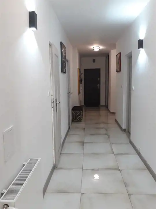 Z korytarza jest wejście do trzech samodzielnych sypialni. W całym mieszkaniu na podłodze jest piękna deska podłogowa, gładzie na ścianach, nowe okna pcv, nowoczesne roletki wewnętrzne, nowa stolarka drzwiowa zewnętrzna i wewnętrzna, energooszczędne ledowe oświetlenie. W mieszkaniu zostały wymienione wszystkie instalacje: elektryczna, wodno-kanalizacyjna, grzewcza. Łazienka osobno w toaletą wyposażona w kabinę prysznicową i wanna z hydro (masażem w jasnej nowoczesnej glazurze i terakocie.