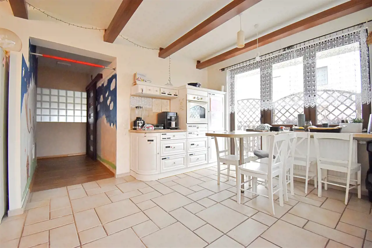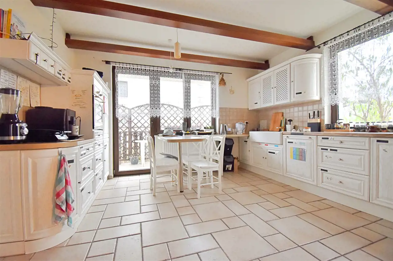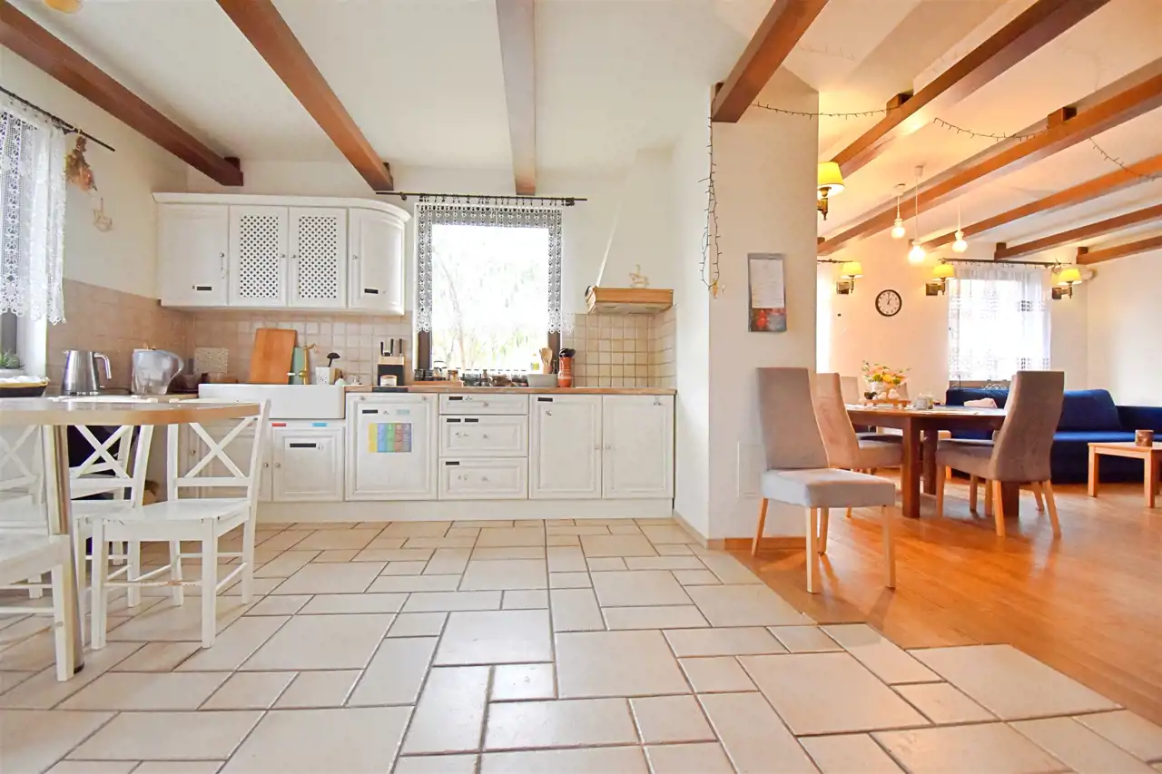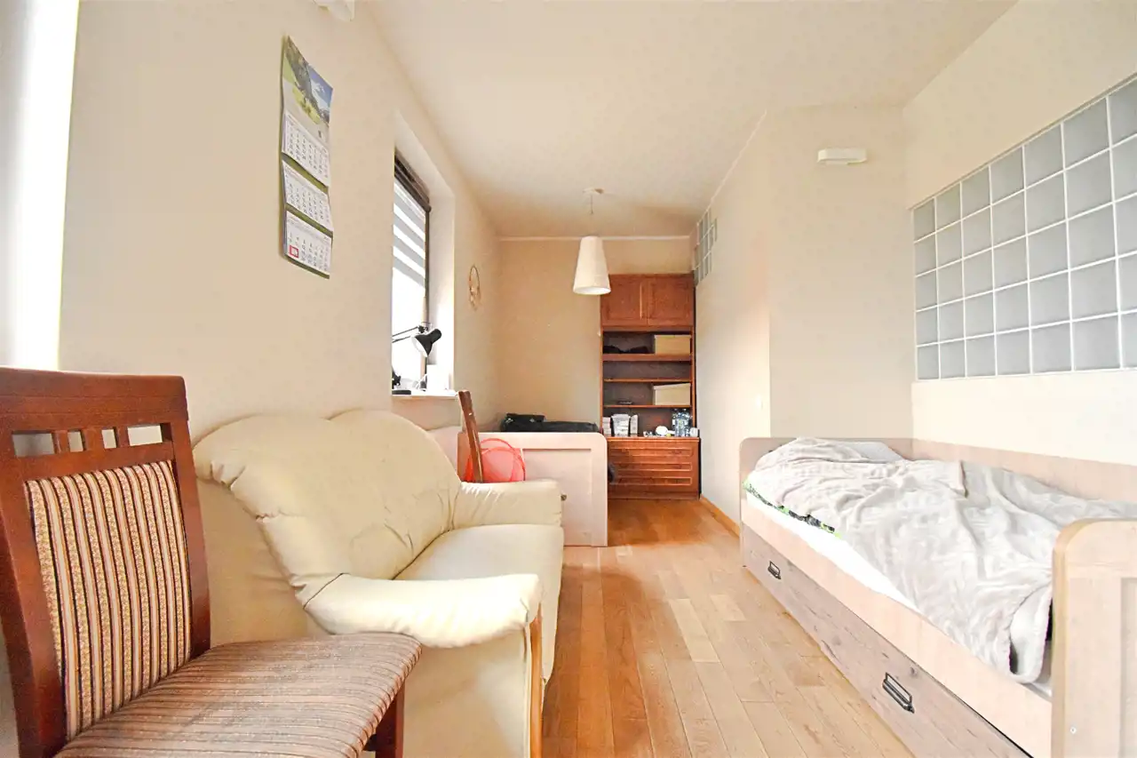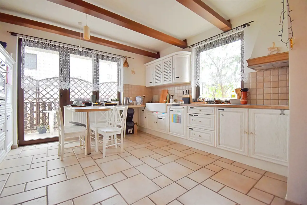 Mieszkanie jest niezwykłe, nietuzinkowe, wyjątkowy układ - bardzo przestrzenne, jak w domu. Z mieszkania jest wyjście na balkon i własny, ogrodzony ogródek z pergolami i huśtawką (w ogródku rosną róże, winogrona i pigwy). Kuchnia wykończona w wysokim standardzie. Całe wnętrze jest wykończone wysokiej jakości materiałami, umeblowane i wyposażone w nowoczesne sprzęty, takie jak zmywarka, dwudrzwiowa lodówka i pełna zabudowa kuchni.
