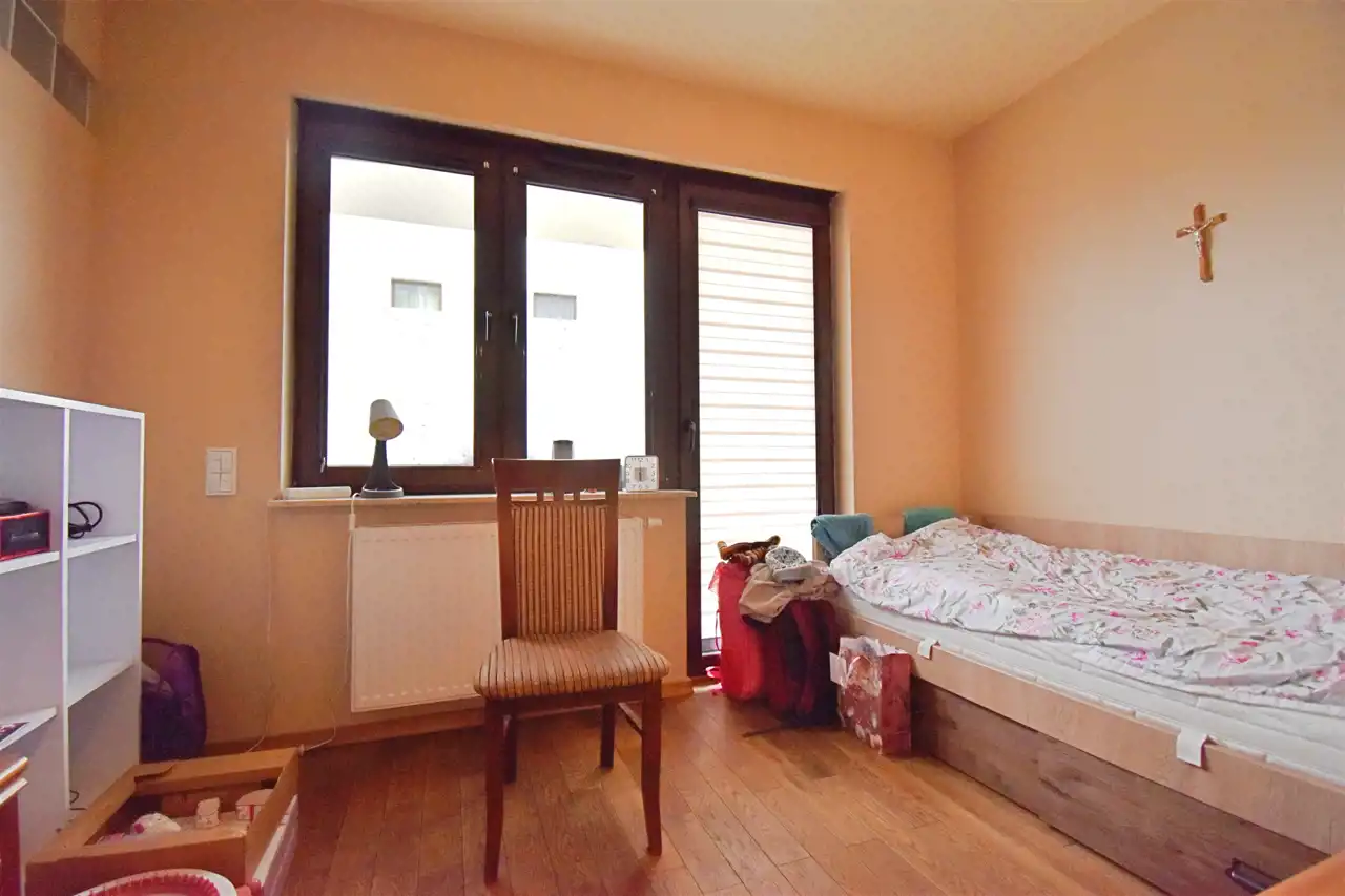 Piękne, przestronne czteropokojowe mieszkanie w trzypiętrowym bloku z cegły, z 2013 r. na parterze. Mieszkanie posiada 4 pokoje, w tym bardzo przestronny salon z dużym aneksem kuchennym z wyjściem na taras z ogródkiem, 3 sypialnie, łazienkę razem z WC i prysznicem, WC z sauną i balią, korytarz, przedpokój oraz garderobę.