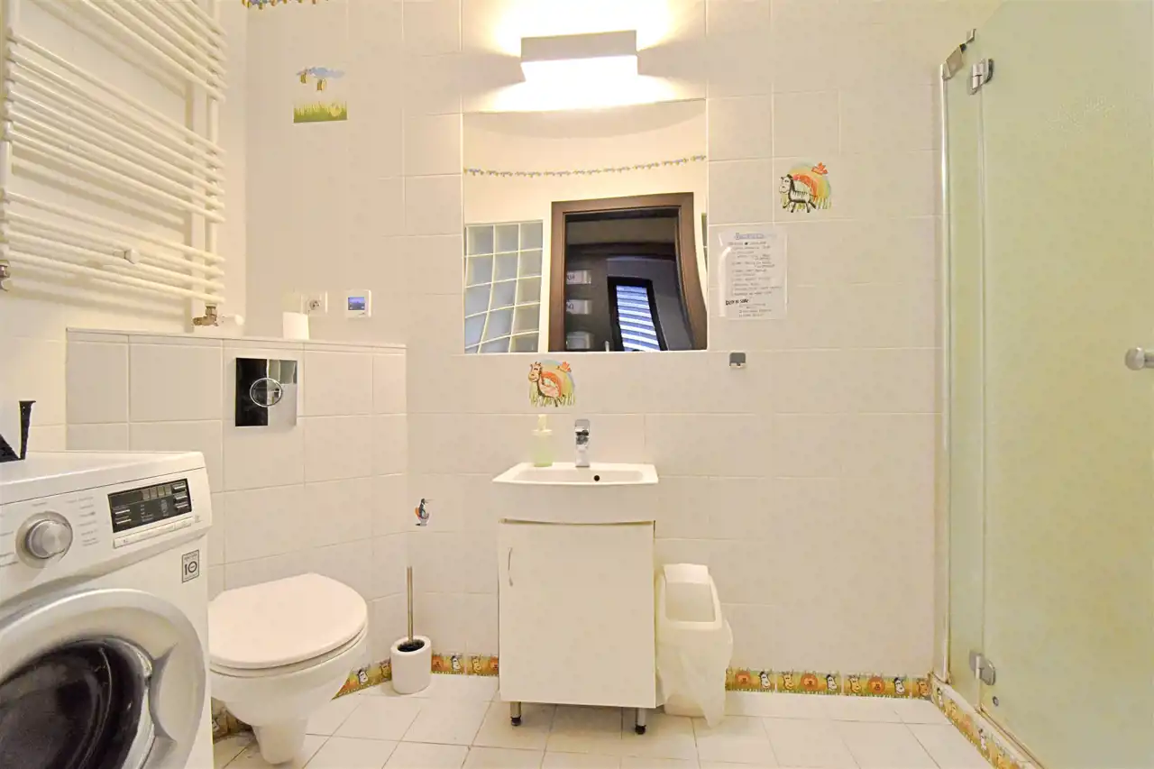 - łazienka z prysznicem i WC,