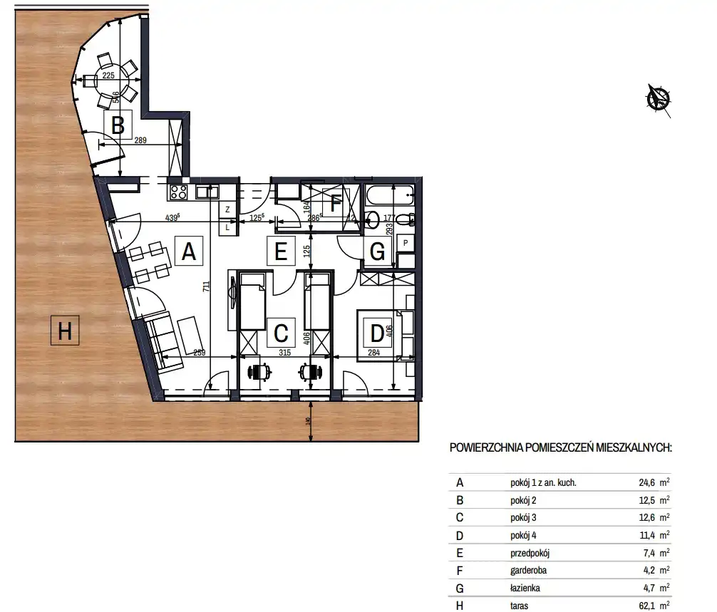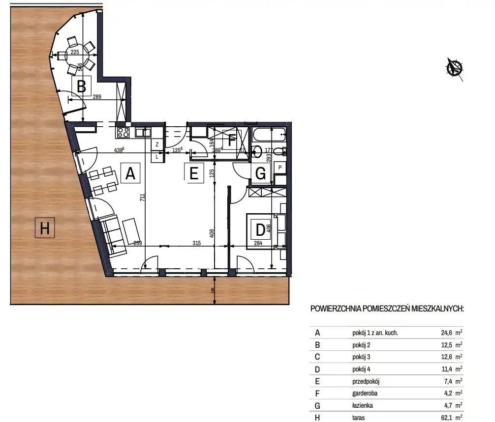 Przyległości: 62m2 taras, miejsce postojowe w hali garażowej dodatkowo płatne 49.000zł