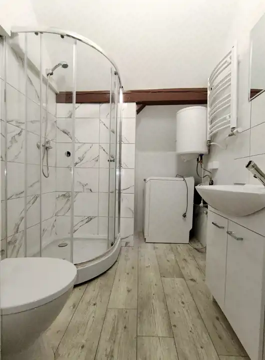 - Media Ogrzewanie: C.O. GAZOWE; Woda: ciepła - piecyk gazowy; Gaz: jest
