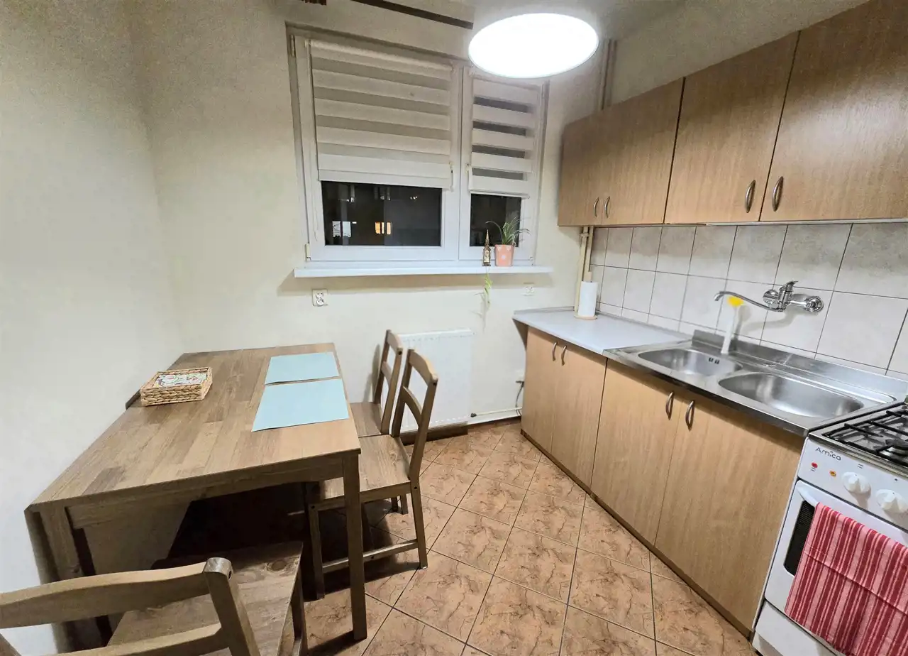 Na powierzchni 35 m² znajdziesz przechodni słoneczny salon z dużymi oknami, osobną zamykaną sypialnię oraz przestronną, umeblowaną kuchnię z dużym stołem - idealnym do wspólnych posiłków. W pokojach znajdują się dwie rozkładane kanapy, dwie komody, a w przedpokoju - dwie pojemne szafy ubraniowe.