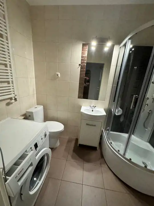 Pokój z aneksem kuchennym, sypialna - zabudowana szafa, łazienka z w.c ( prysznic, pralka).