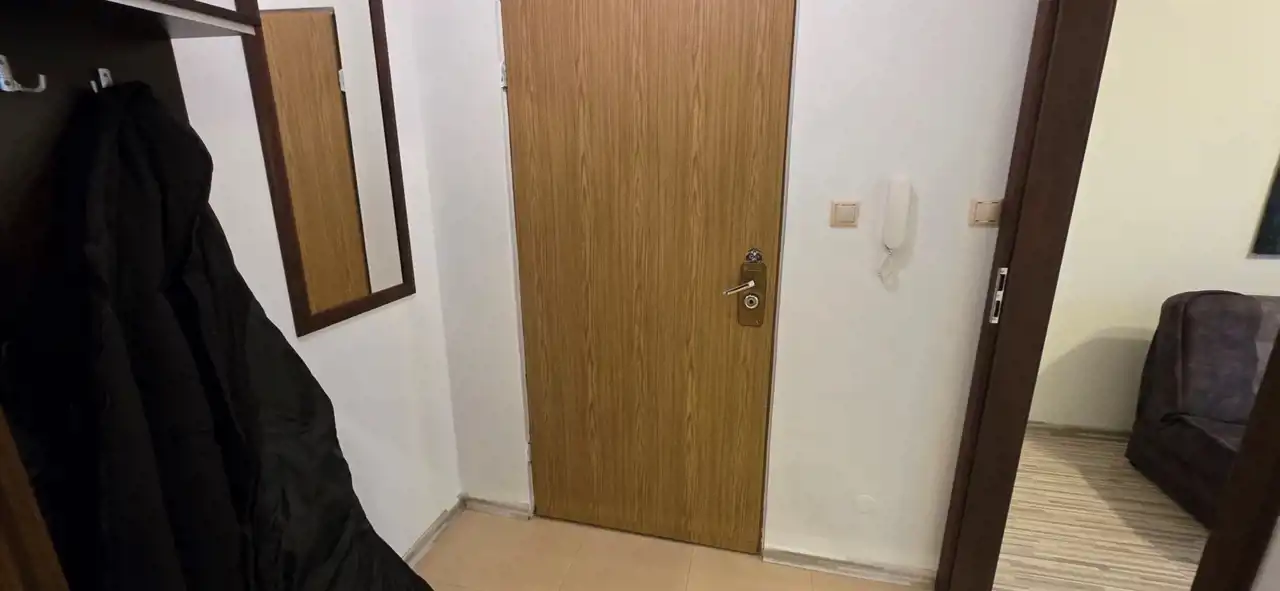 Przedpokój około 3mkw. z funkcjonalną szafką i lustrem.