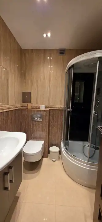 łazienka około 4mkw. w kaflach, kabina z hydromasażem i radiem, pralka.