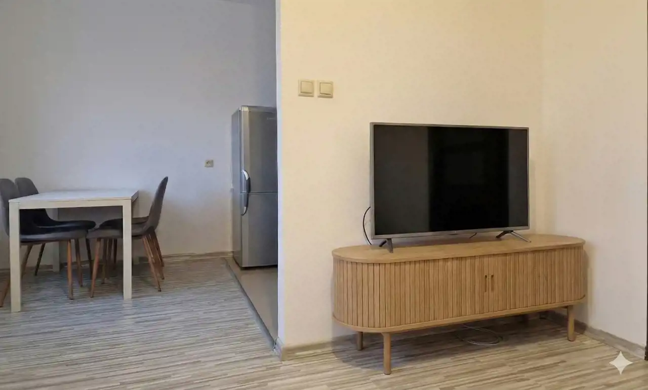 Właściciel kupił już szafkę pod TV i komodę widoczna na zdjęciu w AL. Są tez powieszone firany.
