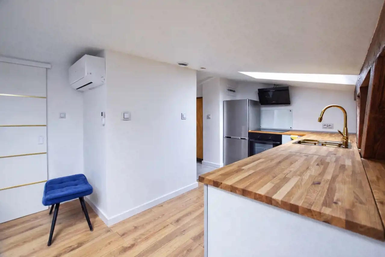 Mieszkanie jest klimatyzowane oraz w pełni wyposażone – całe umeblowanie i sprzęty są nowe