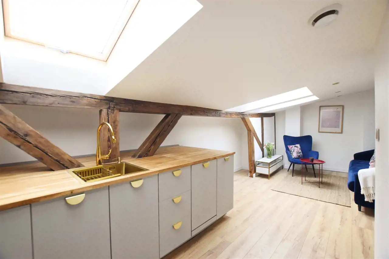 Ze względu na charakter poddasza lokal posiada skosy. Wysokość w najniższym punkcie wynosi: