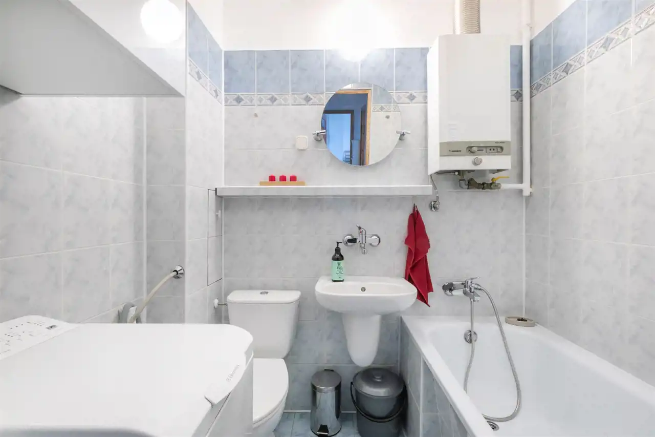 - Media Ogrzewanie: C.O. miejskie; Woda: ciepła - piecyk gazowy; Gaz: jest