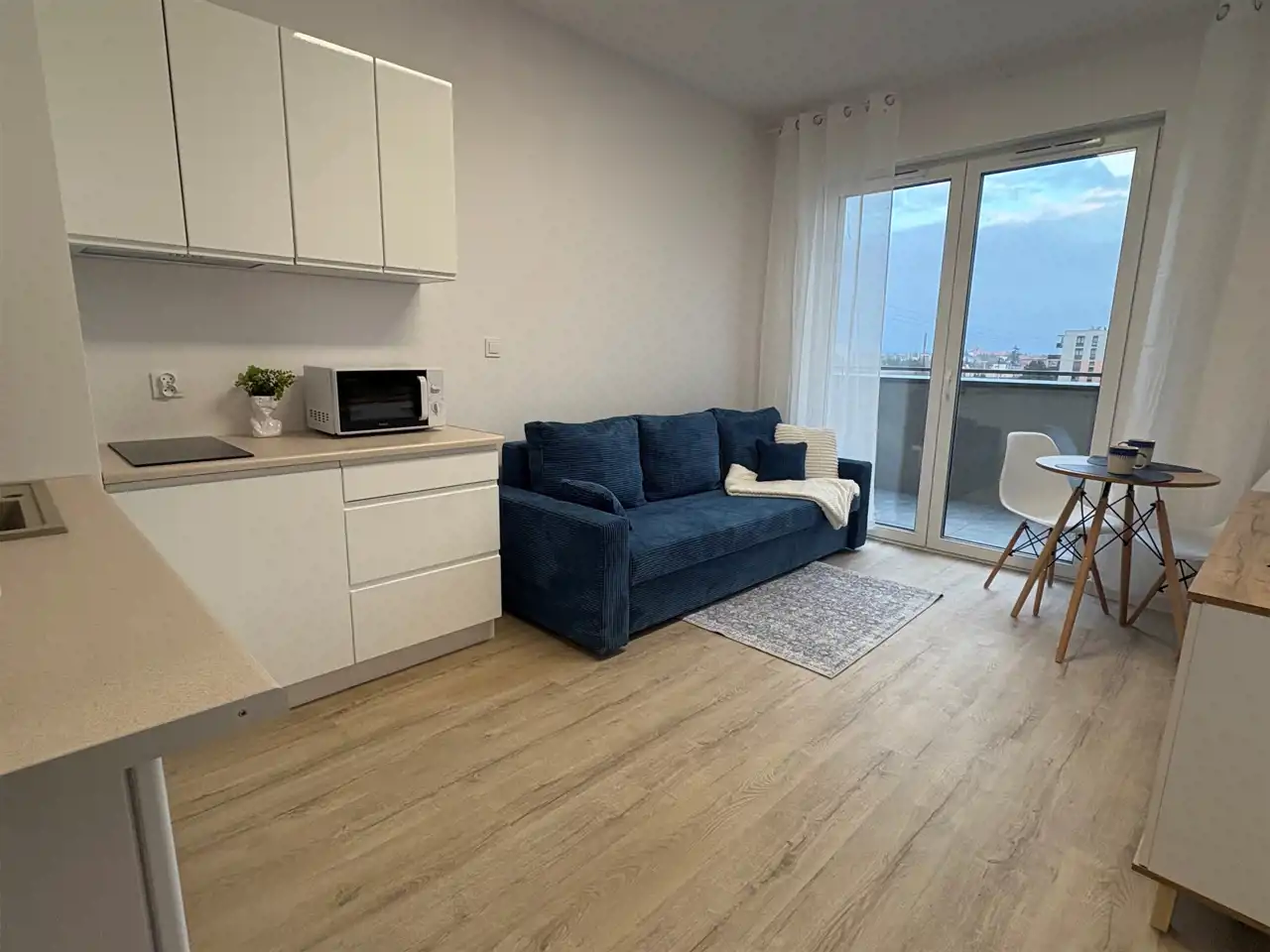 Wyjątkowy budynek z nowo otwierającą się siłownią w cenie najmu i salą zabaw dla dzieci (otwarcie koniec kwietnia 2026). Mieszkanie zostało wyposażone w nowe meble zarówno salonowe jak i kuchenne. Łazienka wyposażona jest w wygodny prysznic. W przedpokoju szafa. Wnętrze urządzono w funkcjonalny sposób gwarantując pełne wyposażenie jak naczynia, kołdrę, poduszkę, sztućce itp.