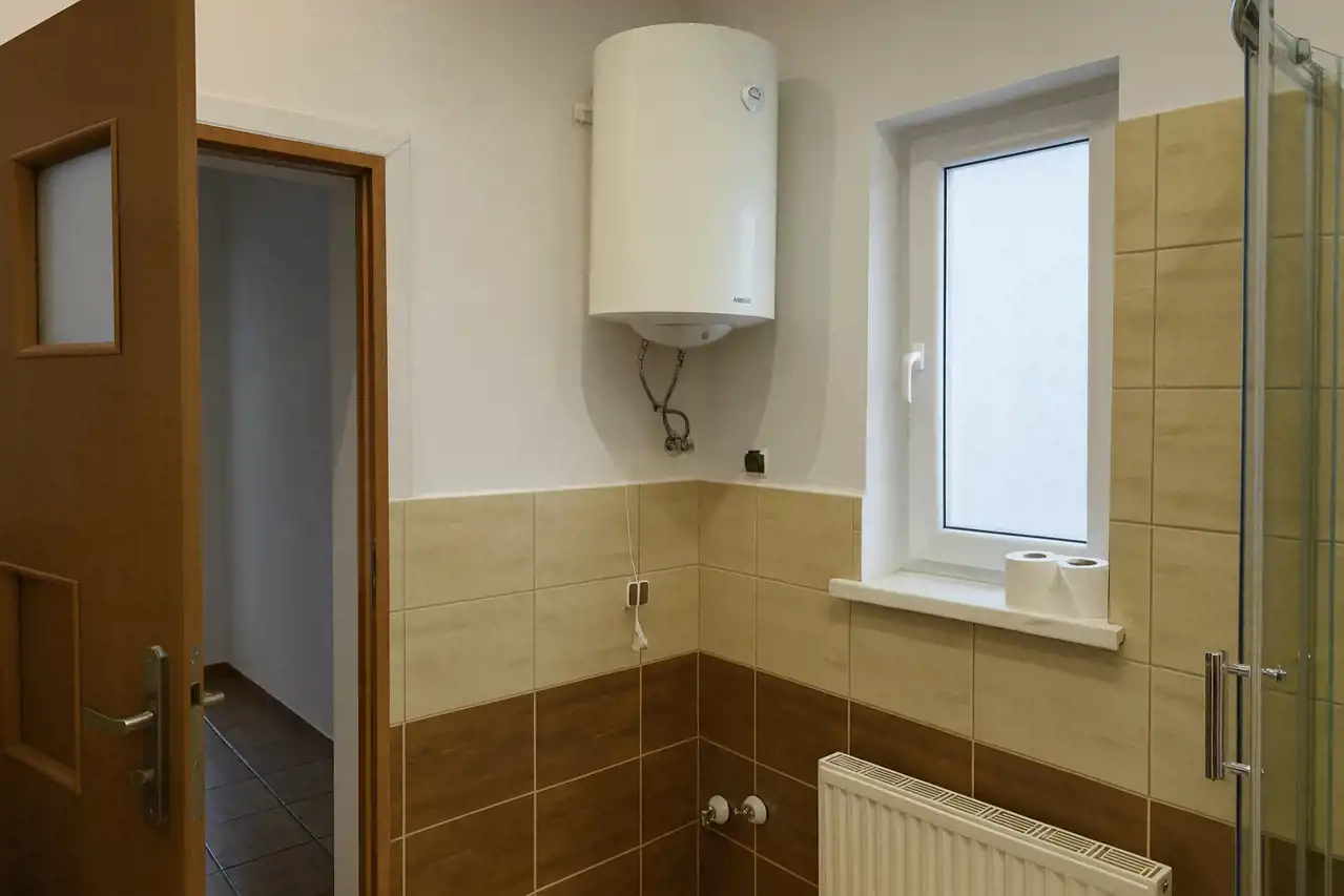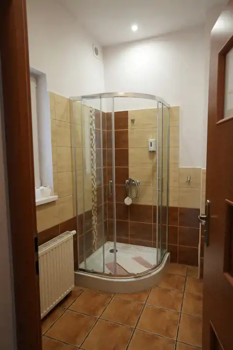 - Łazienka: prysznic, miejsce na pralkę (w budynku: pralnia + suszarnia)