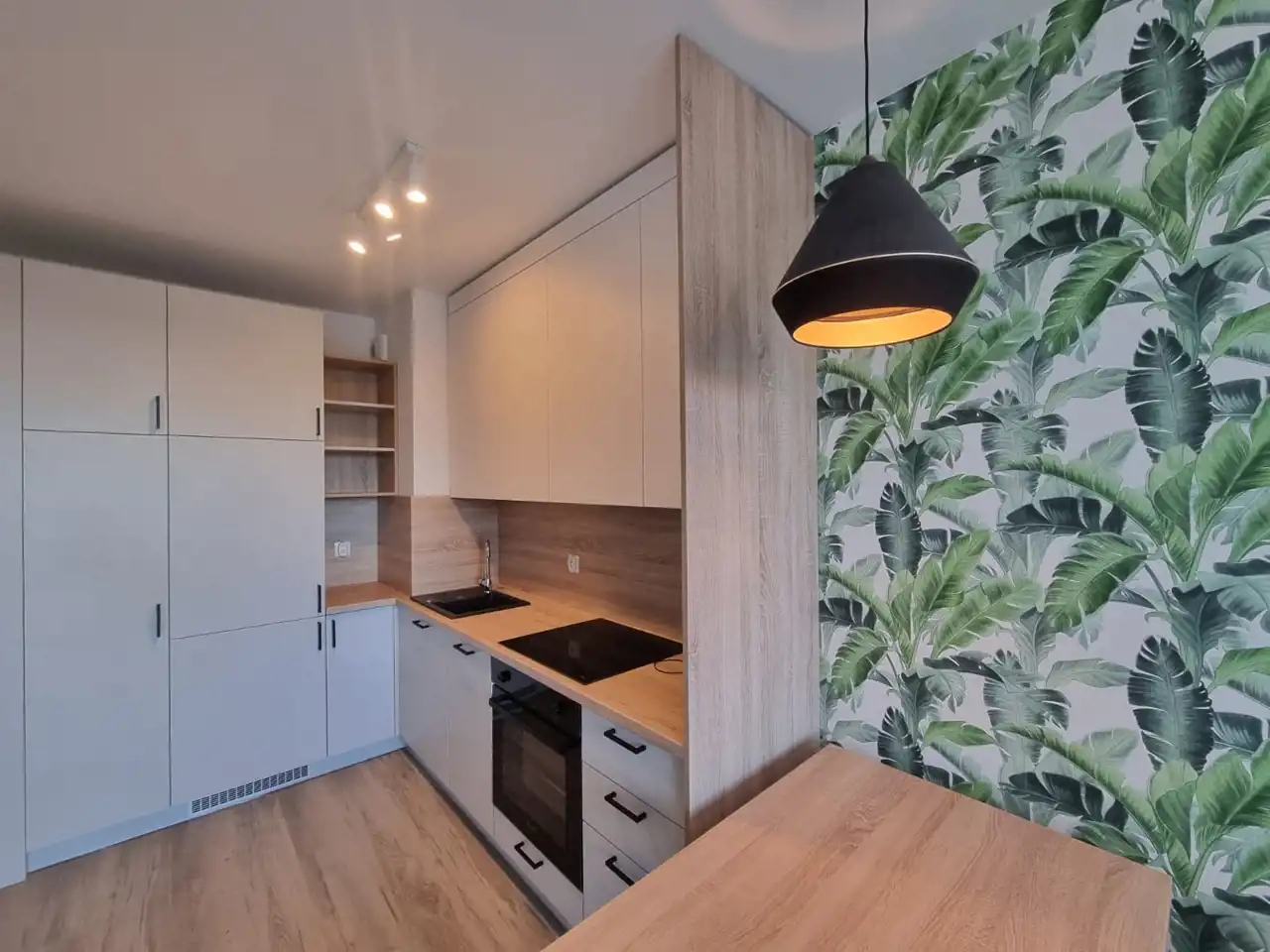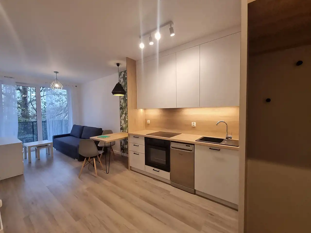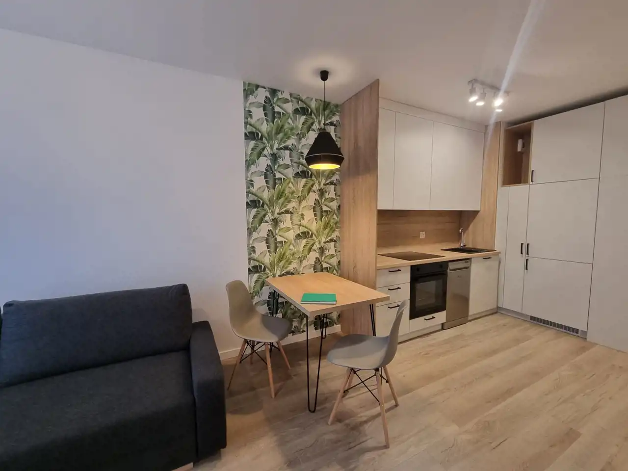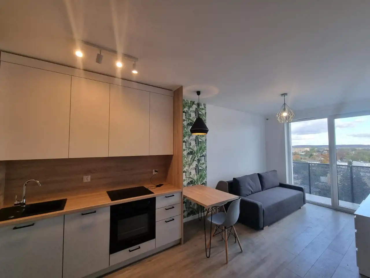 Mieszkanie składa się z salonu aneksem kuchennym , sypialni, łazienki z WC