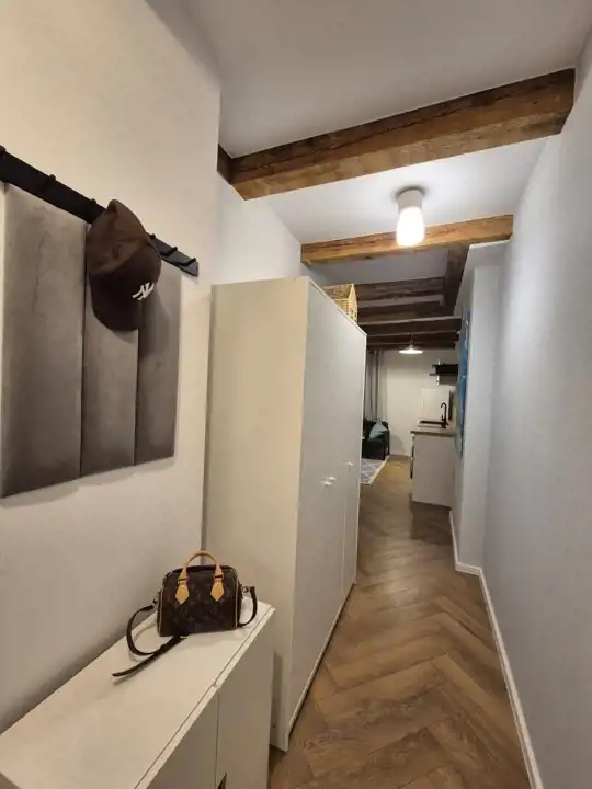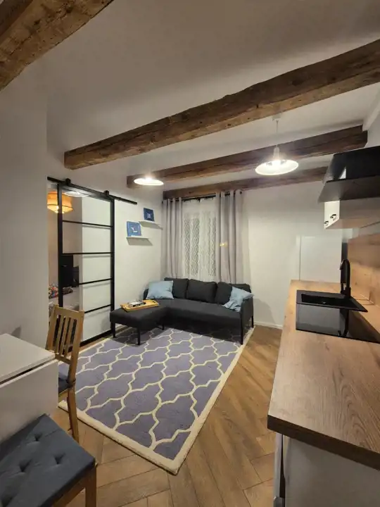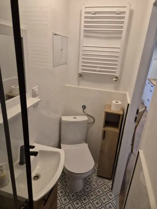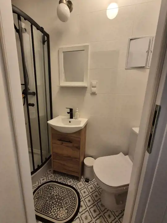 Mieszkanie posiada salon z aneksem i oddzielną sypialnię z wygodnym łóżkiem oraz łazienkę. Szafa do przechowywania w korytarzu.