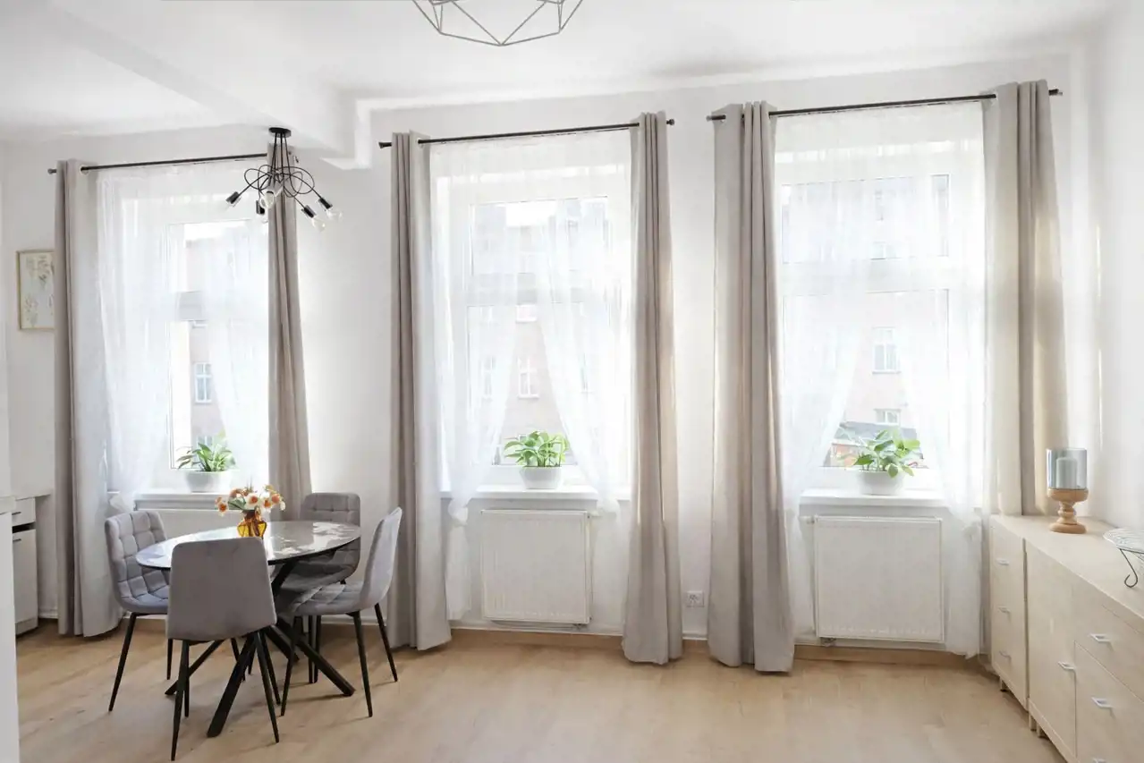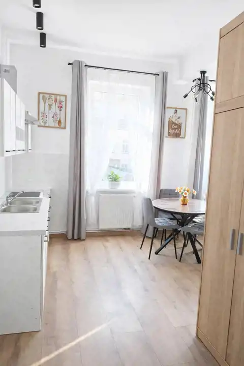 Do wynajęcia jasne i komfortowe mieszkanie po generalnym remoncie, zlokalizowane na 1 piętrze kamienicy w dzielnicy Okole w Bydgoszczy. Lokal jest świeżo wyremontowany – pierwszy najem, w pełni wyposażony i gotowy do zamieszkania.