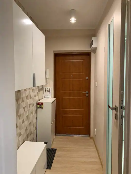 Korytarz- szafka na buty i ubrania, lampa i inne ozdobniki.