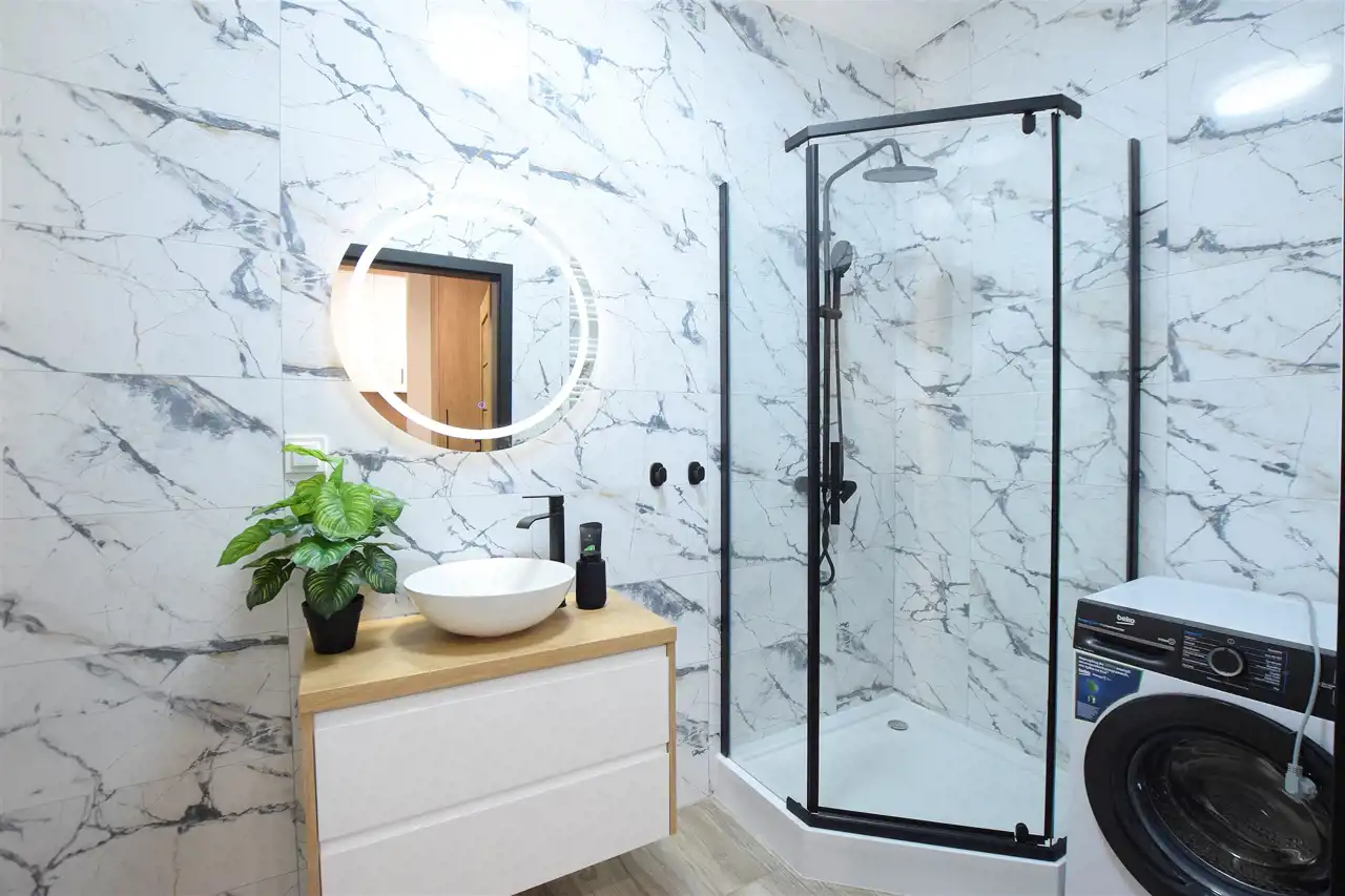 Ściany - gładź gipsowa, płytki ceramiczne w łazience;