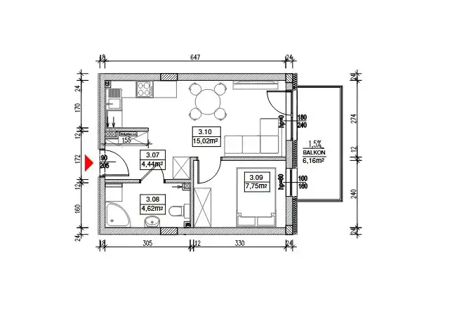 - Rozkład mieszkania 3p piętro