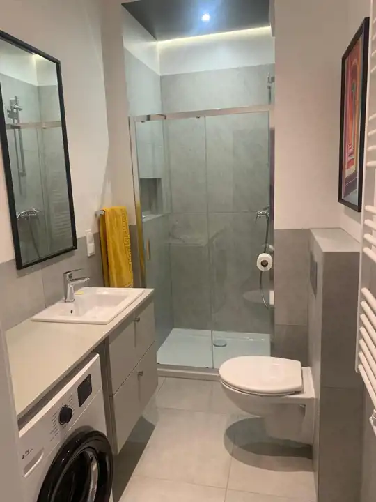 - łazienka - WC, obszerny prysznic, pralka pod blatem