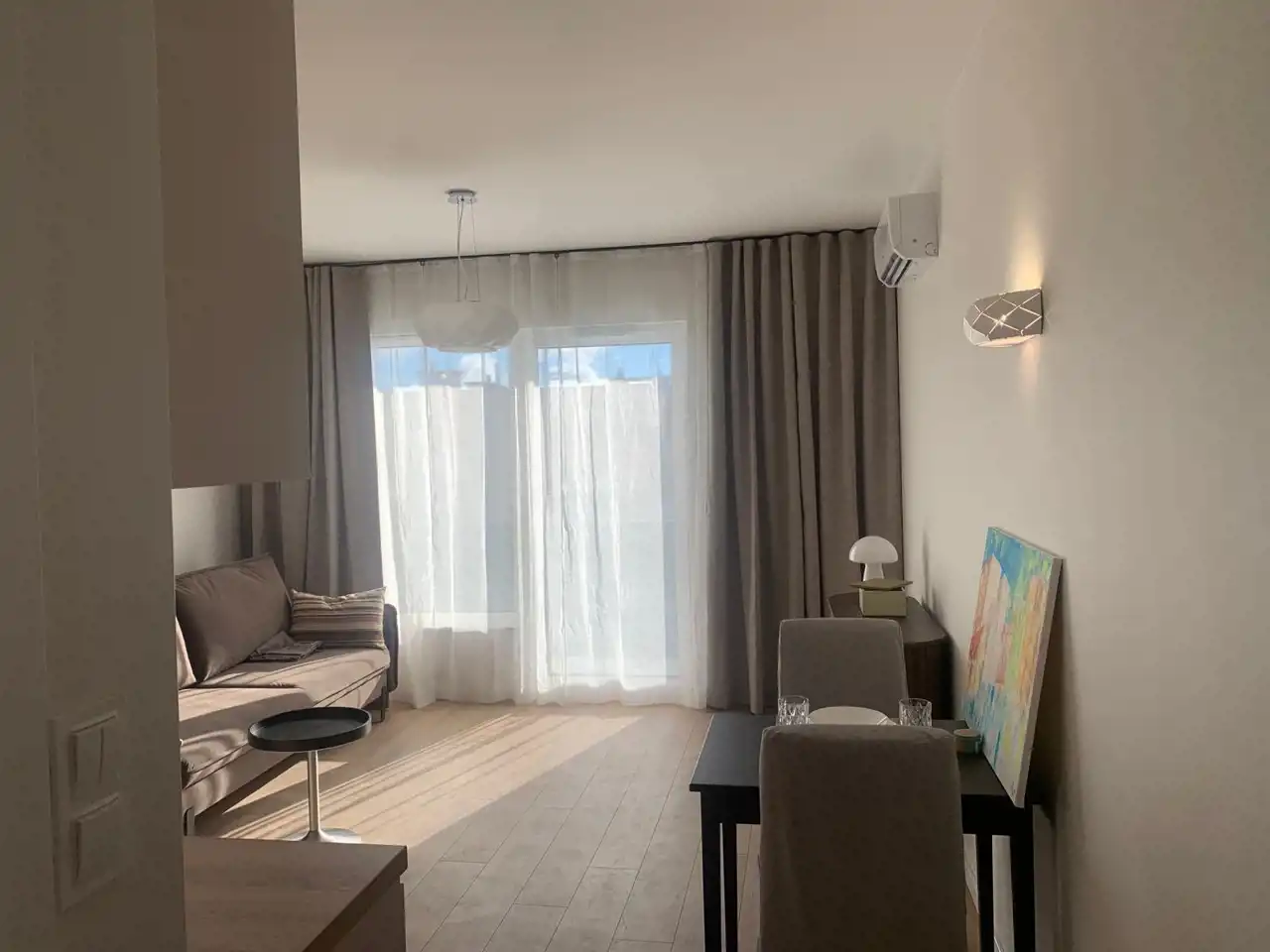 - Salonik wraz z aneksem kuchennym.