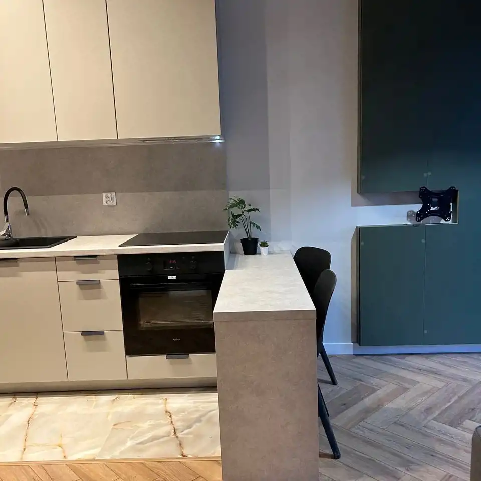 Mieszkanie urządzone w nowoczesnym, minimalistycznym stylu, z dbałością o szczegóły.