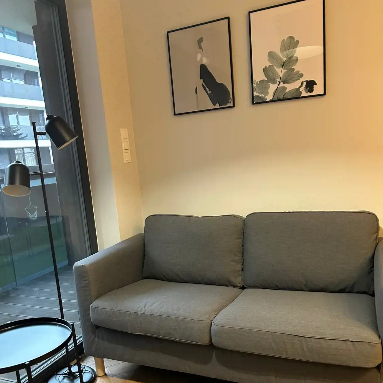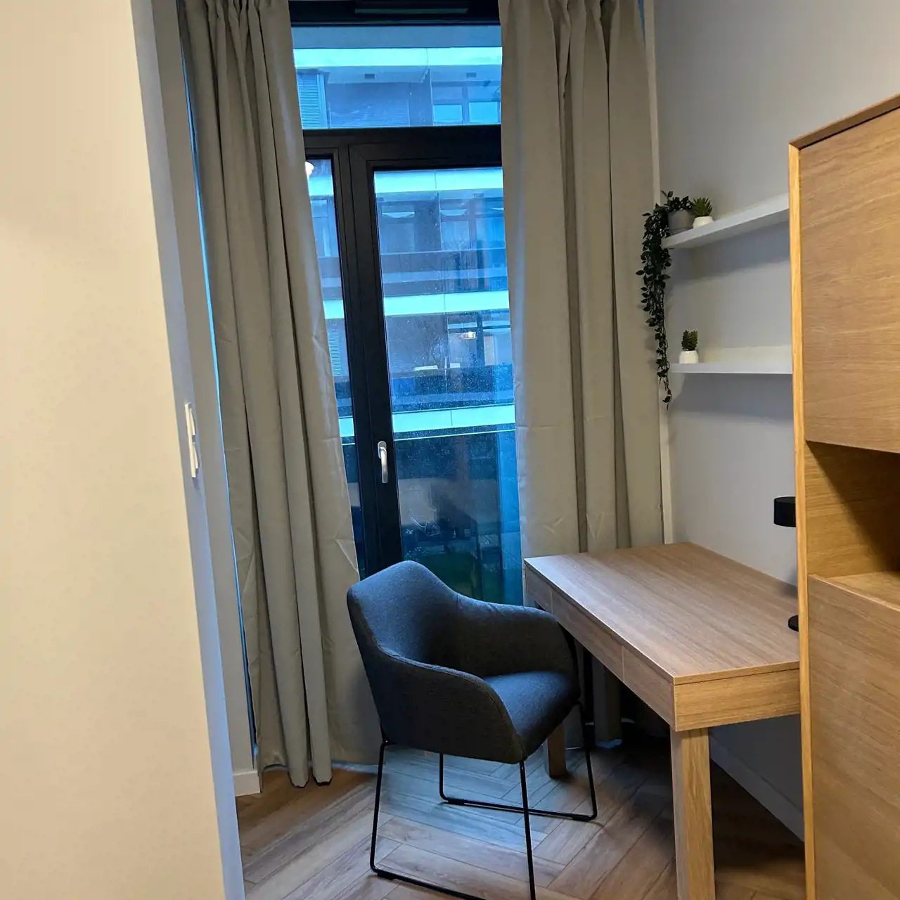 Składa się z salonu z aneksem kuchennym, sypialni z miejscem do pracy i dużej łazienki z prysznicem.