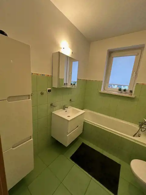 Łazienka z wc - wanna, lustro zostanie wymienione na inne, pralka może być na stanie.