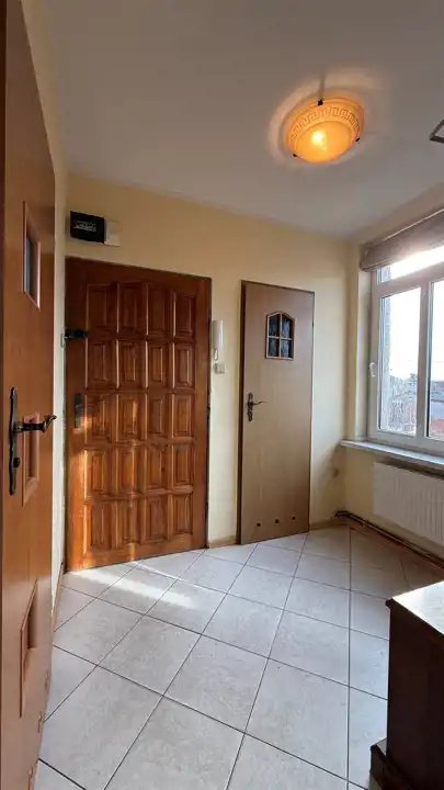 Mieszkanie składa się z trzech pokoi, w tym jeden z aneksem kuchennym, łazienki, WC oraz przedpokoju.