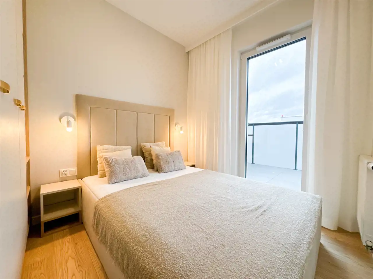 Mieszkanie nowoczesne, bardzo jasne z funkcjonalnym układem. Mieszkanie posiada salon z aneksem z wyjściem na balkon, oddzielną sypialnię również z wyjściem na balkon oraz łazienkę. Duża szafa z miejscem do przechowywania w sypialni oraz szafa w korytarzu.