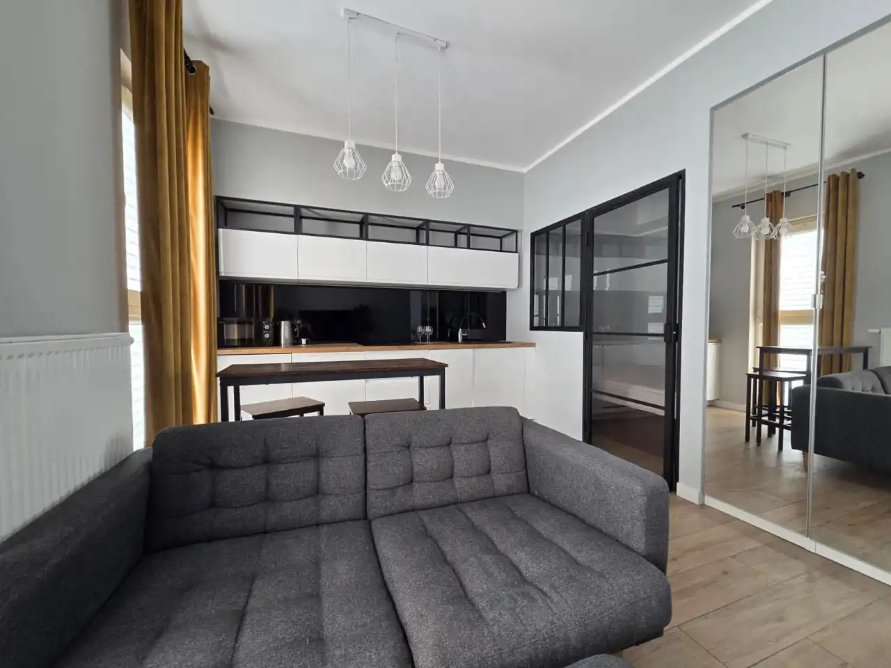 Apartament idealny dla osób ceniących nowoczesne wnętrza, komfort oraz doskonałą lokalizację.